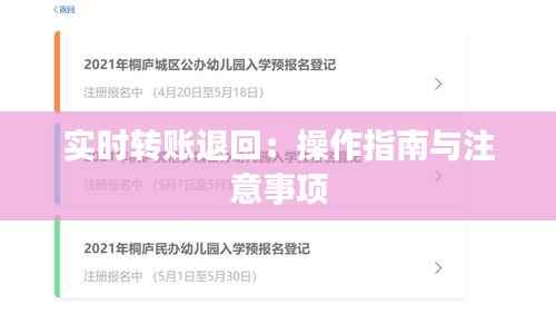 <p>随着移动支付和在线转账的普及,实时转账已经成为人们日常生活中不可或缺的一部分。然而,有时候由于种种原因,我们需要对已进行的实时转账进行退回操作。本文将详细介绍实时转账退回的方法、注意事项以及可能遇到的问题。</p>